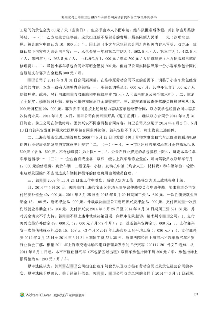 (2014)沪二中民三(民)终字第1376号-郭兴安与上海前卫出租汽车有限公司劳动合同纠纷二审民事判决书