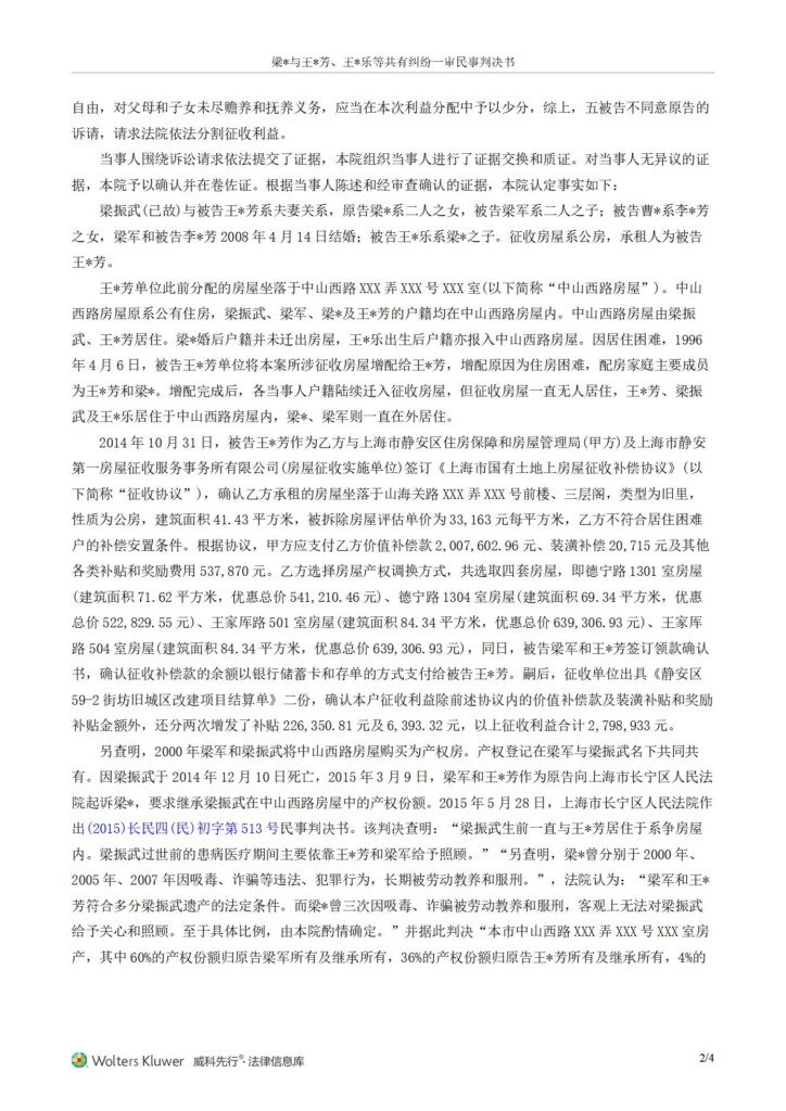 (2017)沪0106民初46429号-梁红与王兰芳、王家乐等共有纠纷一审民事判决书_01
