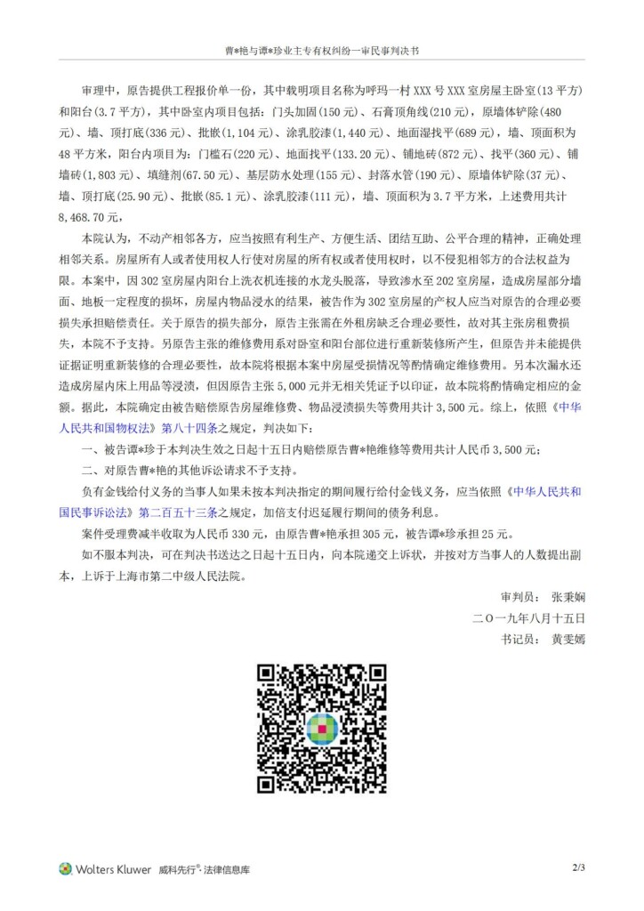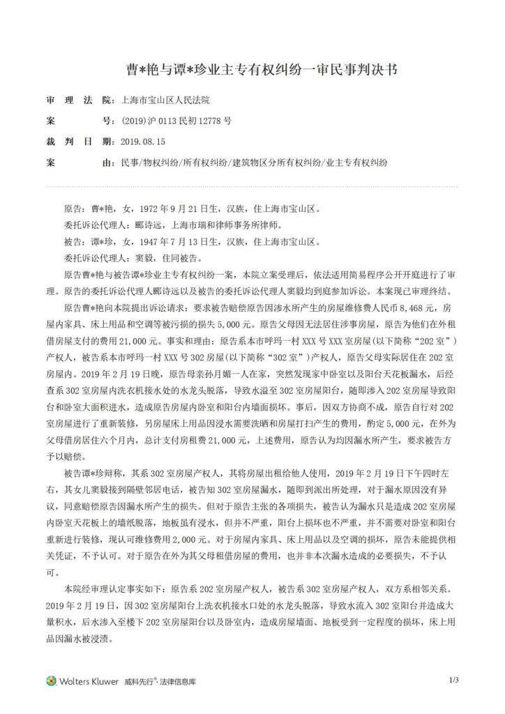 (2019)沪0113民初12778号-曹海艳与谭秀珍业主专有权纠纷一审民事判决书_01