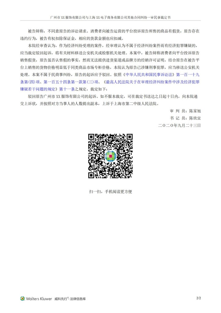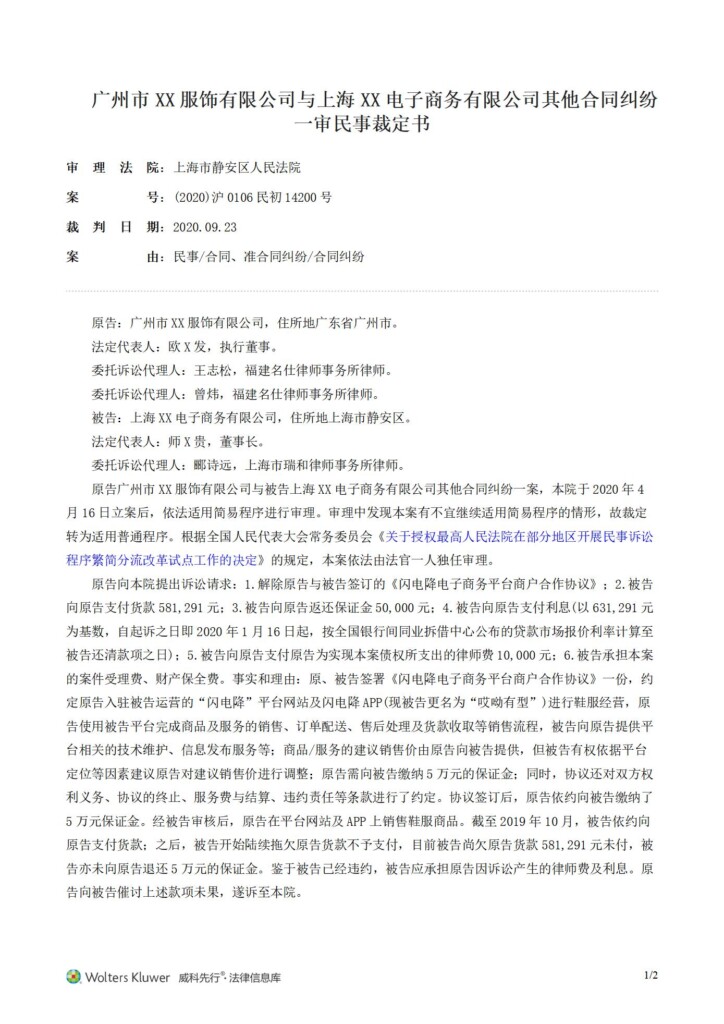 (2020)沪0106民初14200号-广州市岚枝盛服饰有限公司与上海欢尚电子商务有限公司其他合同纠纷一审民事裁定书_01