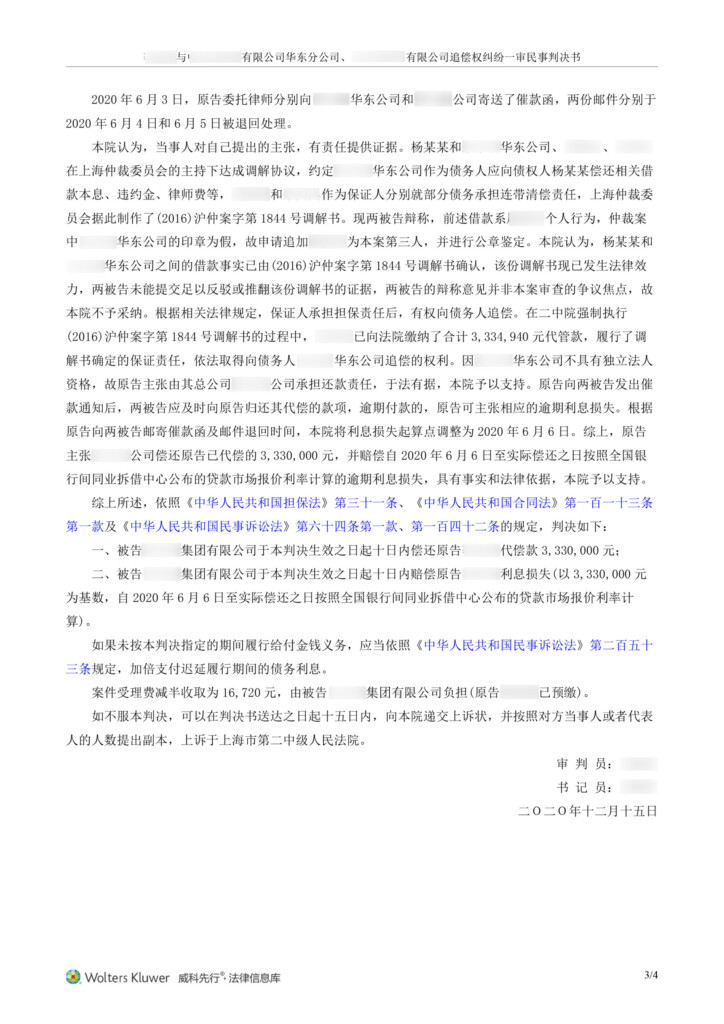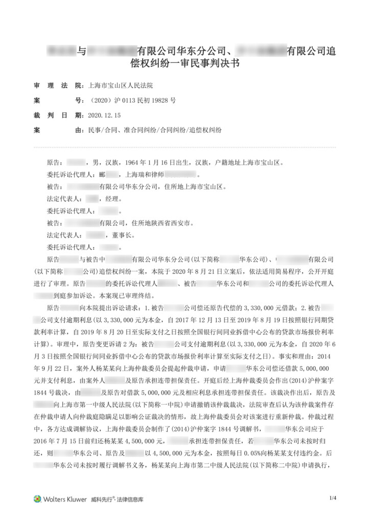 (2020)沪0113民初19828号-李贞其与中十冶集团有限公司华东分公司、中十冶集团有限公司追偿权纠纷一审民事判决书-1