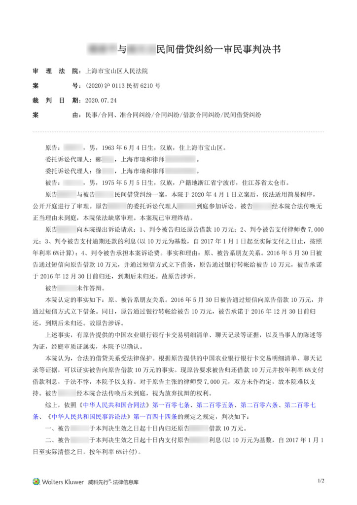 (2020)沪0113民初6210号-顾希平与南天文民间借贷纠纷一审民事判决书-1