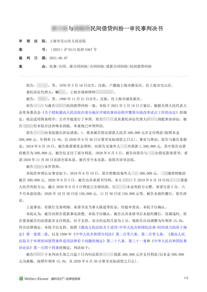 (2021)沪0113民初5467号-唐天闻与胡振伟民间借贷纠纷一审民事判决书-1