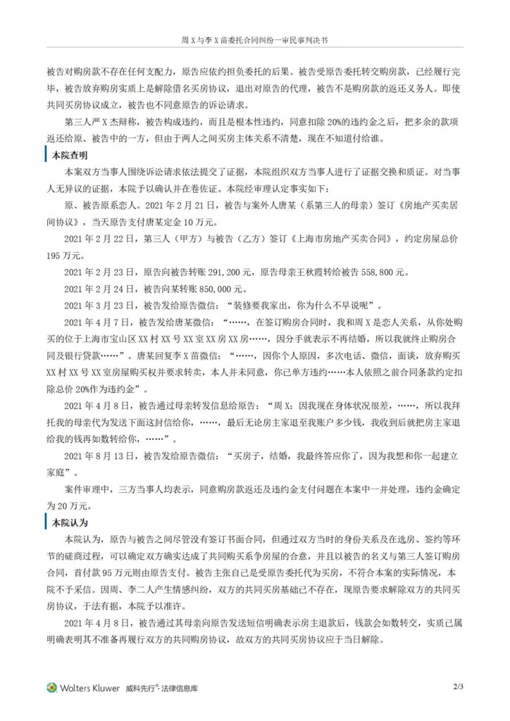 (2022)沪0113民初16511号-周斐与李苗苗委托合同纠纷一审民事判决书_01