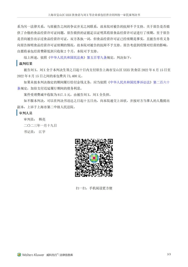 (2022)沪0113民初27802号-上海市宝山区海滨老四川饮食店与刘文等企业承包经营合同纠纷一审民事判决书_01
