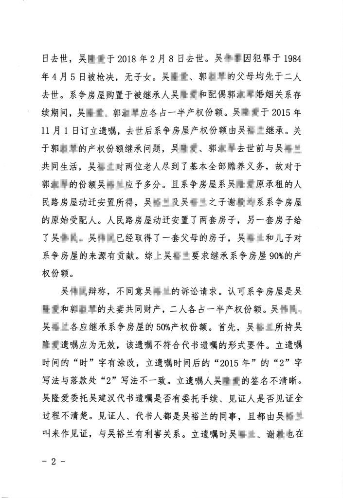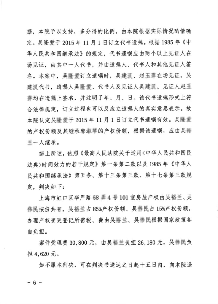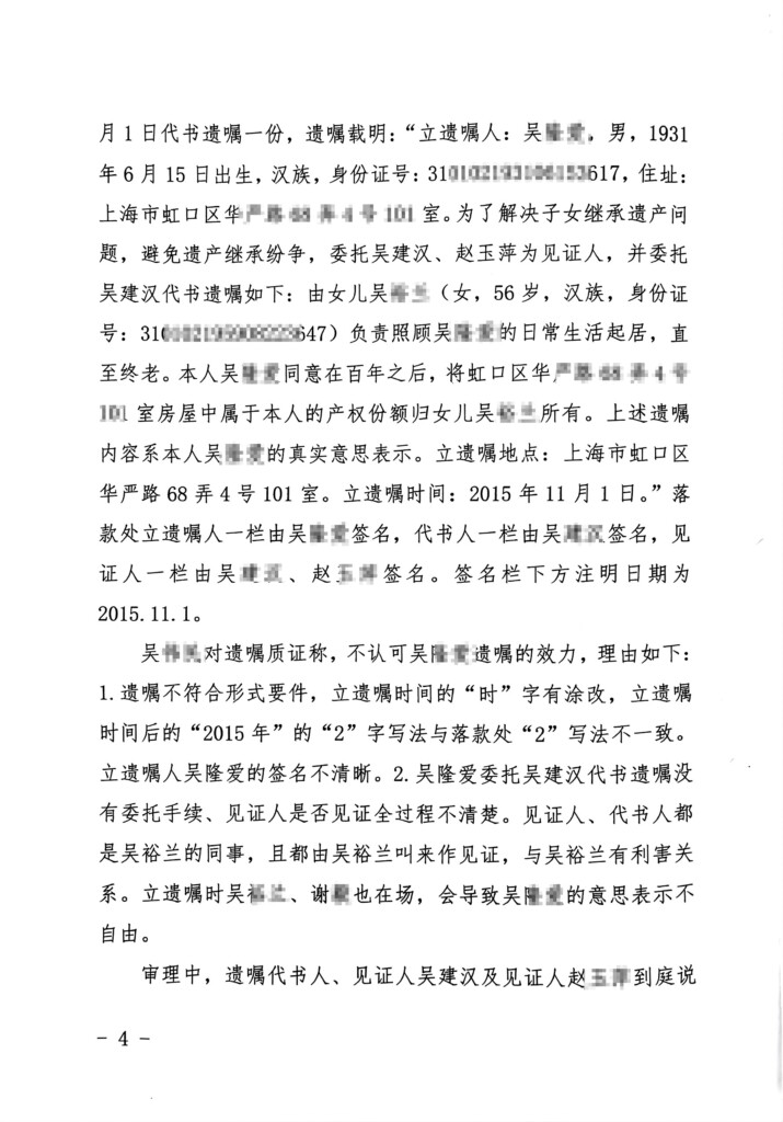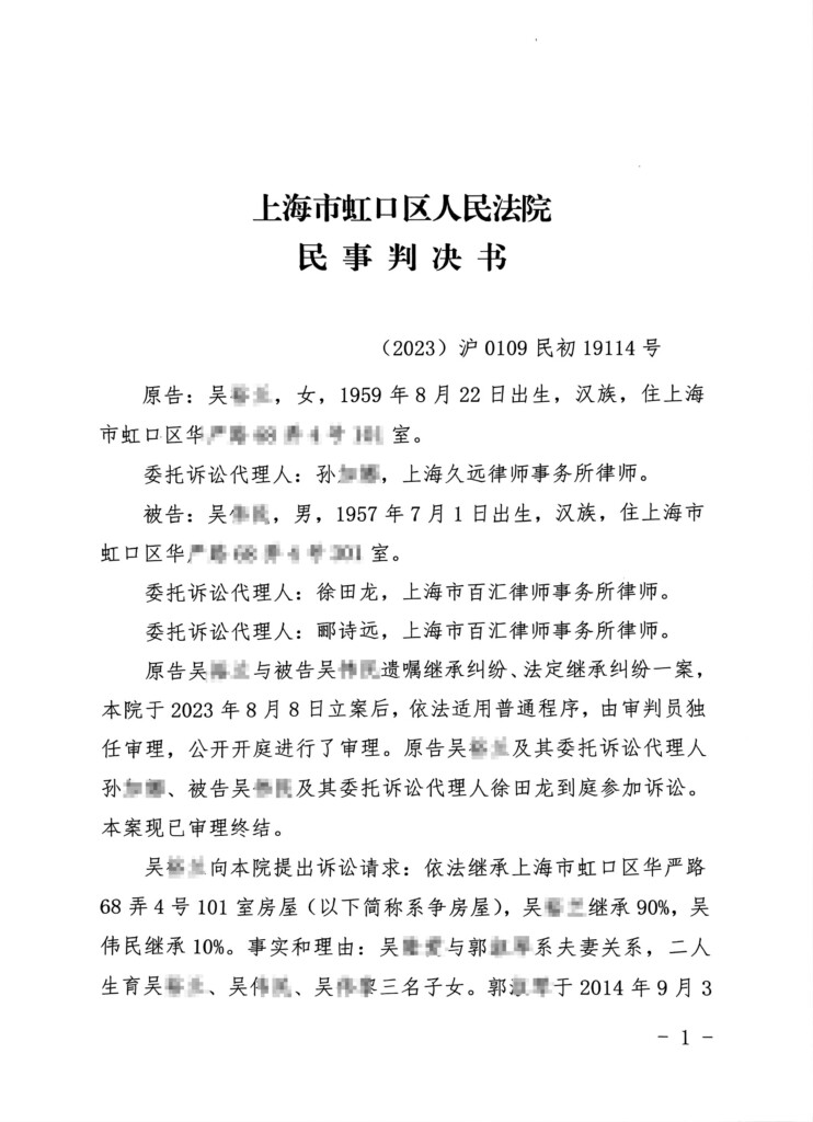 (2023)沪0109民初19114号-吴伟民与吴裕兰遗嘱继承纠纷民事判决书_页面_1