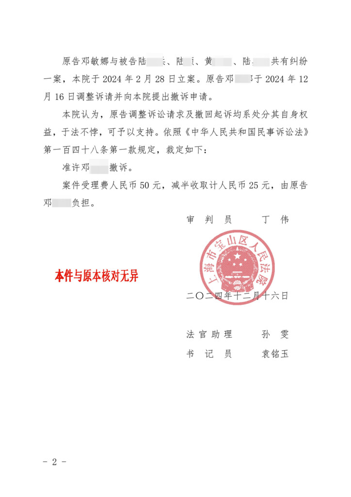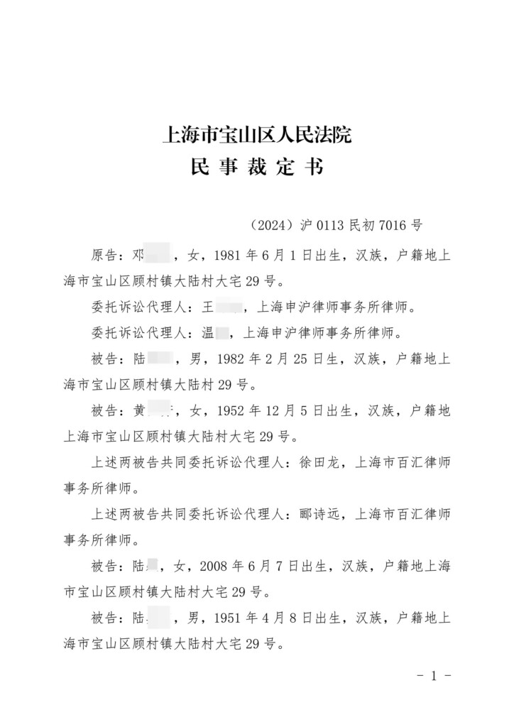 (2024)沪0113民初7016号-陆某某与邓某某共有纠纷民事裁定书