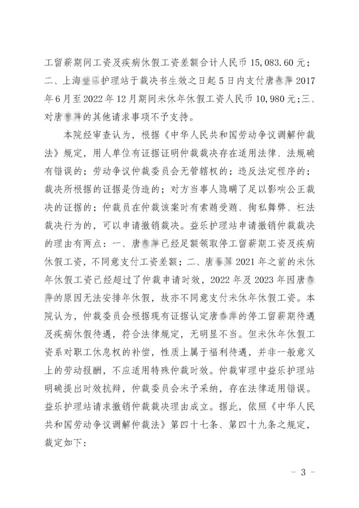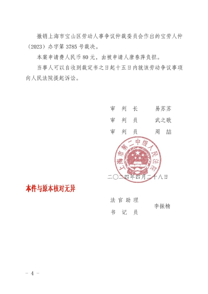 (2024)沪02民特133号-上海益乐护理站与唐春萍劳动仲裁民事裁定书_00