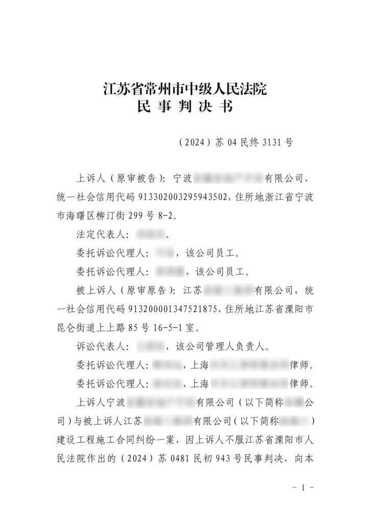 (2024)苏04民终3131号-江苏某有限公司与宁波某有限公司建设工程施工合同纠纷民事判决书