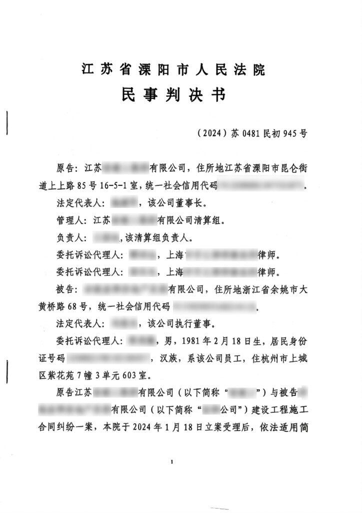 (2024)苏0481民初945号-江苏建工集团有限公司与余姚星律房地产发展有限公司建设工程施工合同纠纷民事判决书-1