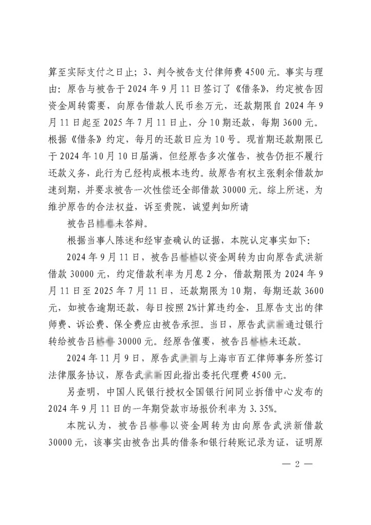 (2025)鲁1728民初149号-武洪新与吕格格民间借贷纠纷民事判决书