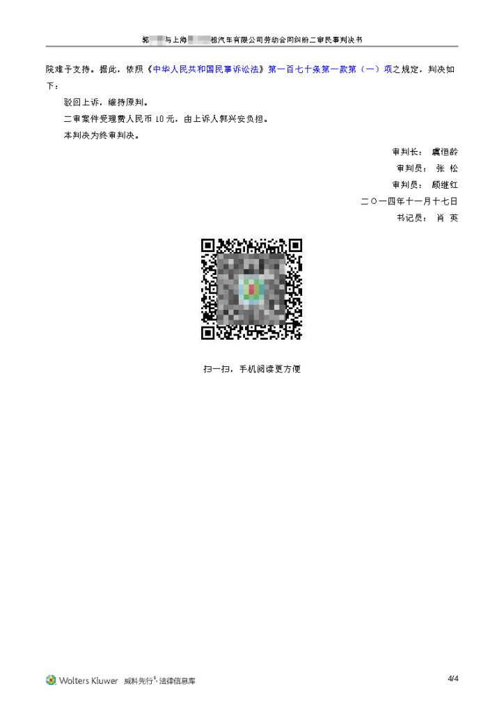 (2014)沪二中民三(民)终字第1376号-郭兴安与上海前卫出租汽车有限公司劳动合同纠纷二审民事判决书_页面_1