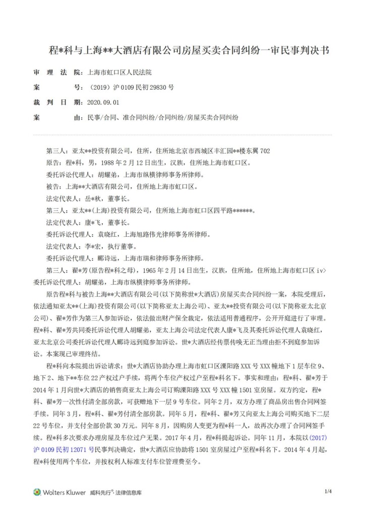 (2019)沪0109民初29830号-程晶科与上海虹口世纪大酒店有限公司房屋买卖合同纠纷一审民事判决书_01