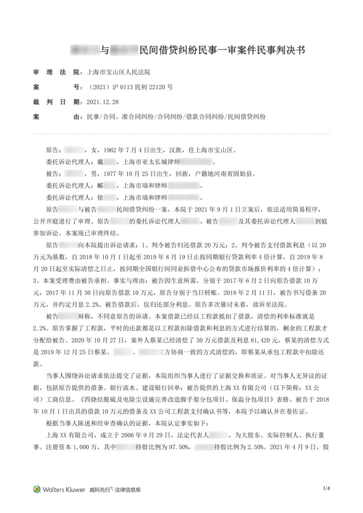 (2021)沪0113民初22120号-唐吉兰与柴光平民间借贷纠纷民事一审案件民事判决书-1
