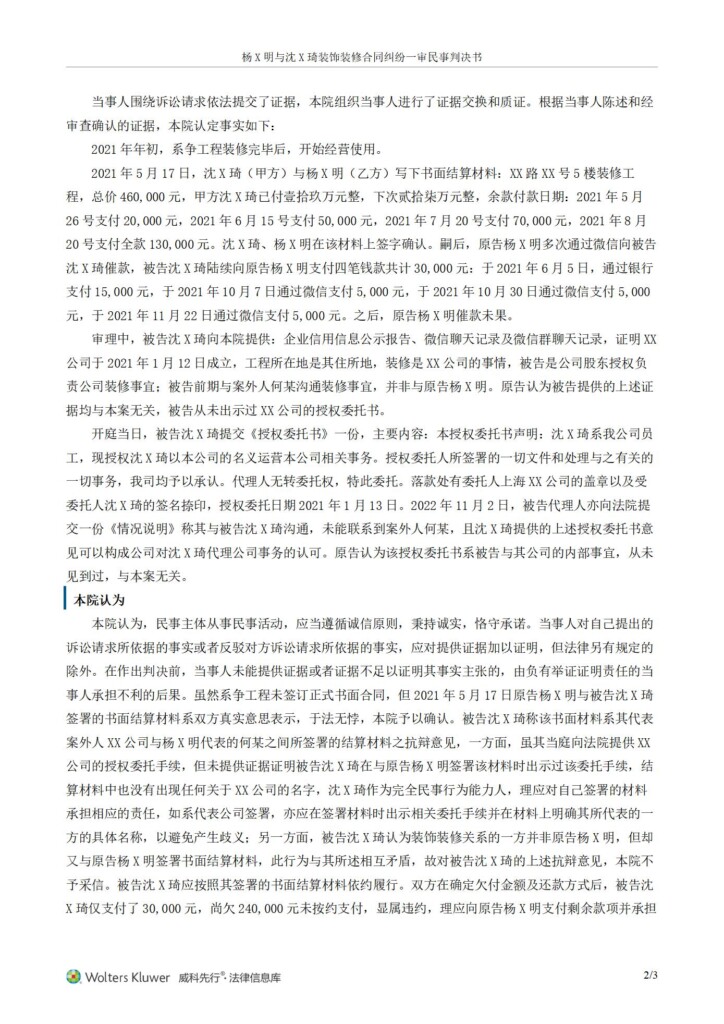 (2022)沪0110民初19490号-杨邦明与沈嘉琦装饰装修合同纠纷一审民事判决书_01
