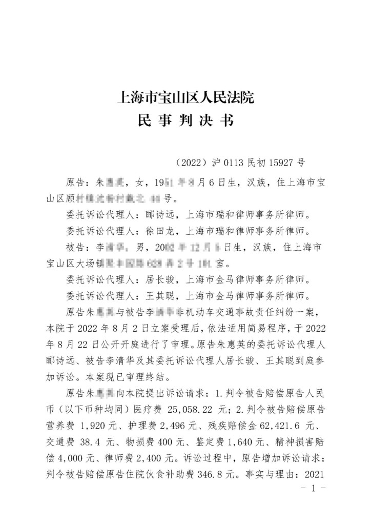 (2022)沪0113民初15927号-朱惠英与李清华非机动车交通事故责任纠纷民事判决书_00