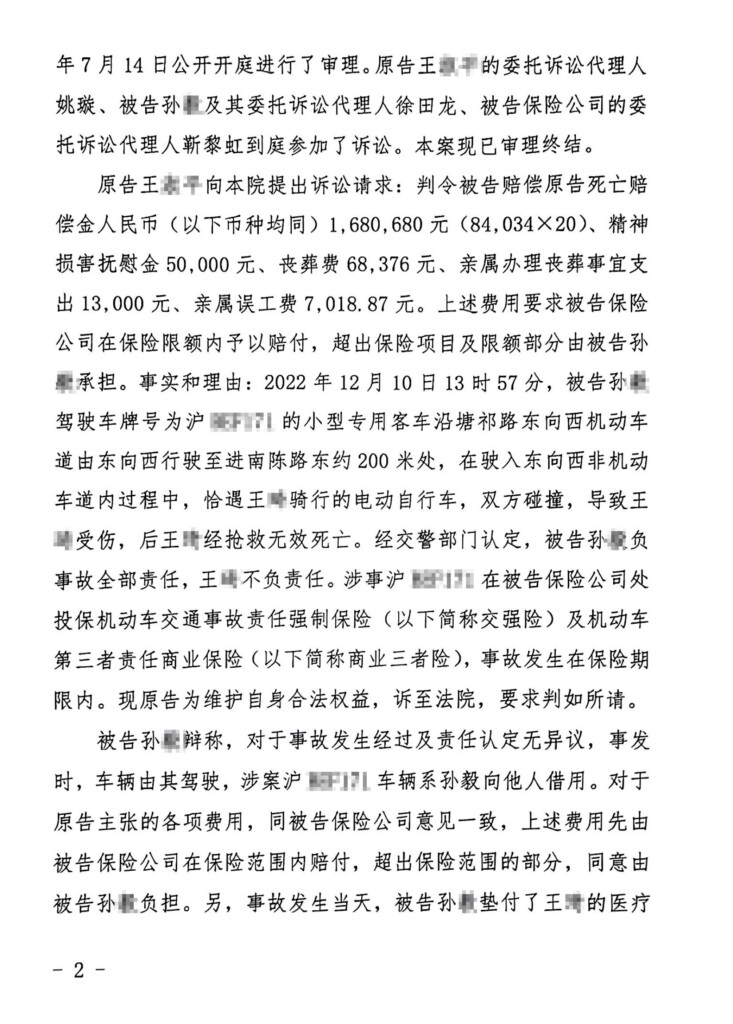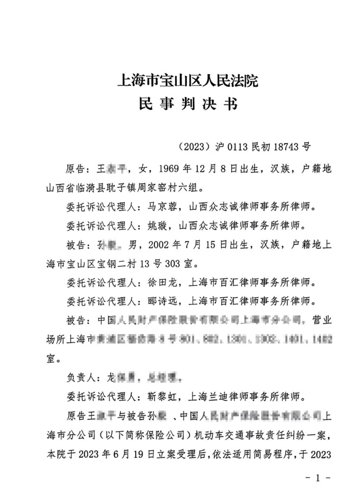 (2023)沪0113民初18743号-孙毅、中国人民财产保险股份有限公司上海市分公司与王淑平机动车交通事故责任纠纷民事判决书_00