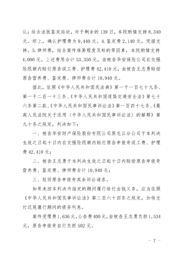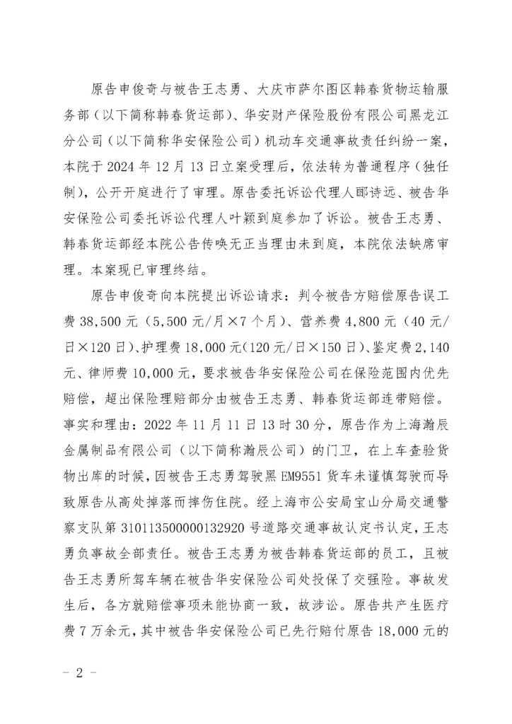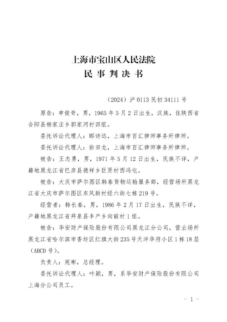 (2024)沪0113民初34111号-申俊奇与王志勇等机动车交通事故纠纷民事判决书_页面_01