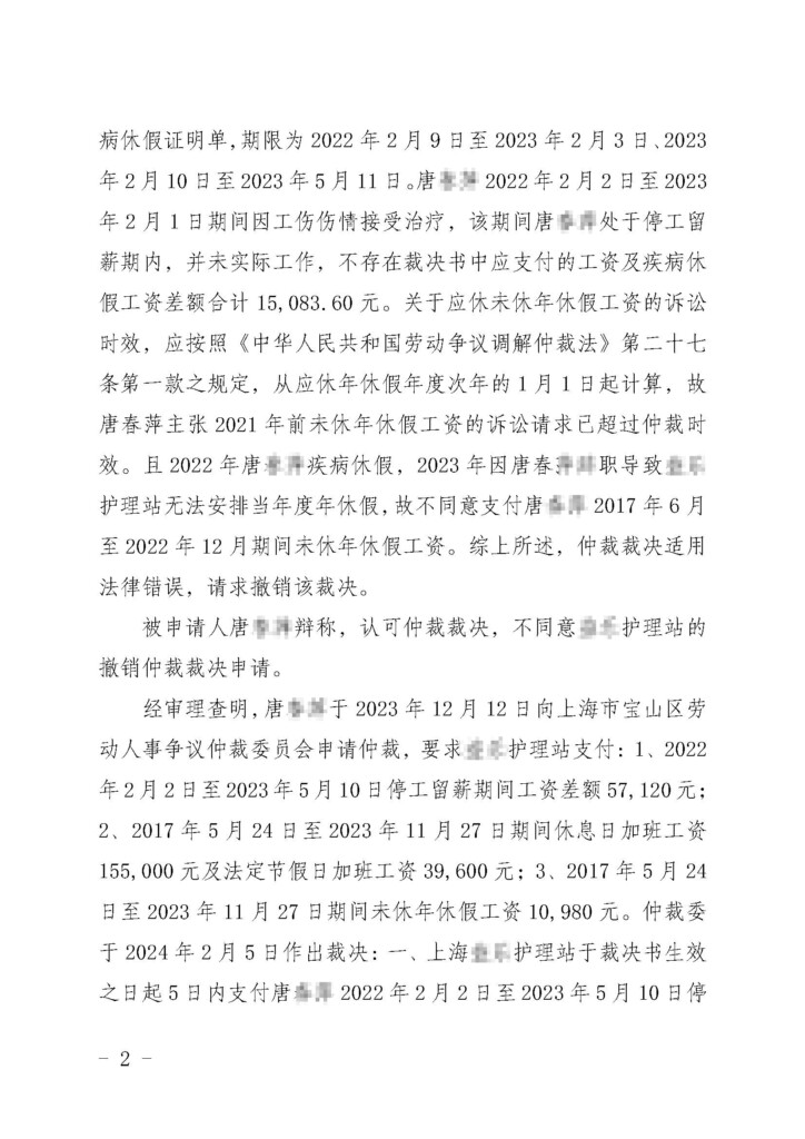 (2024)沪02民特133号-上海某护理站与唐某某劳动仲裁民事裁定书