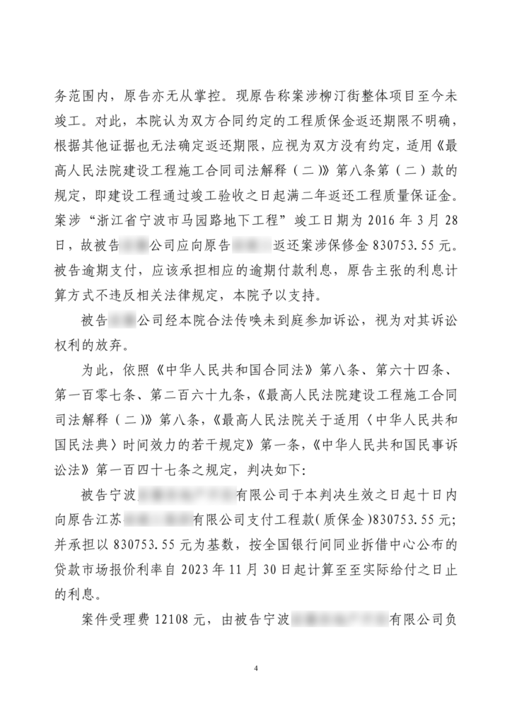 (2024)苏0481民初943号-江苏某有限公司与宁波某有限公司建设工程施工合同纠纷民事判决书