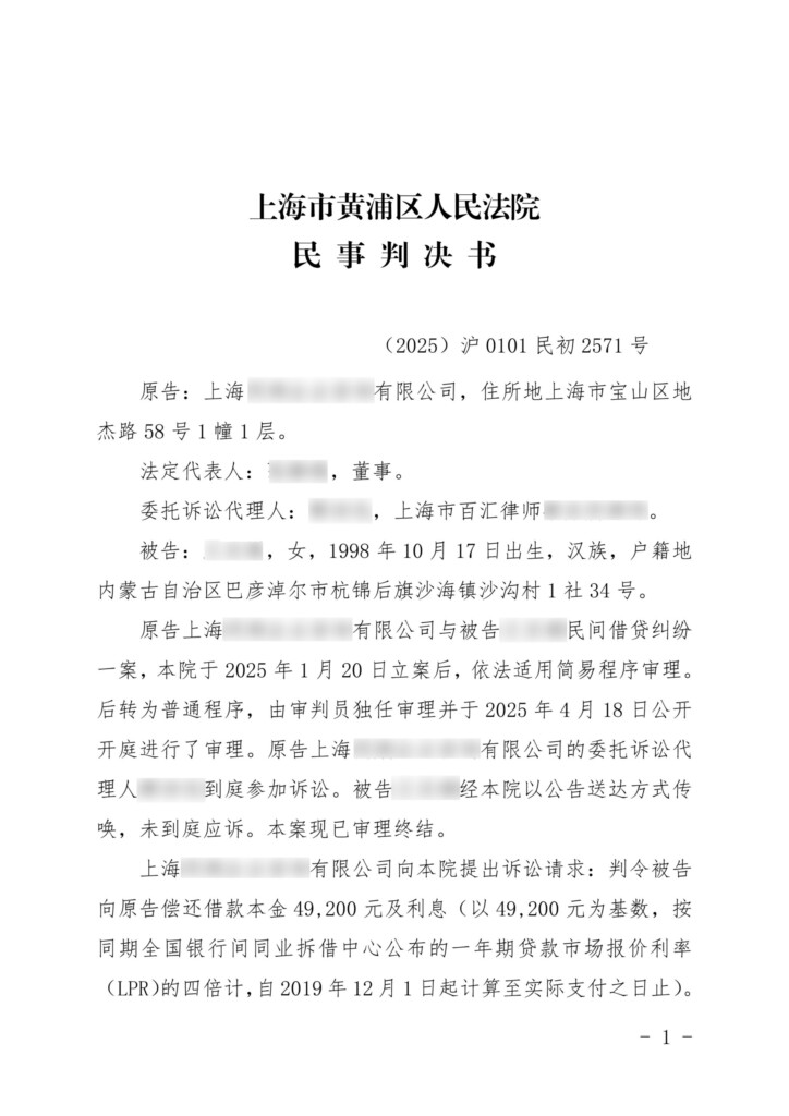(2025)沪0101民初2571号-上海同炯企业咨询有限公司诉王亚娟民间借贷纠纷民事判决书-1