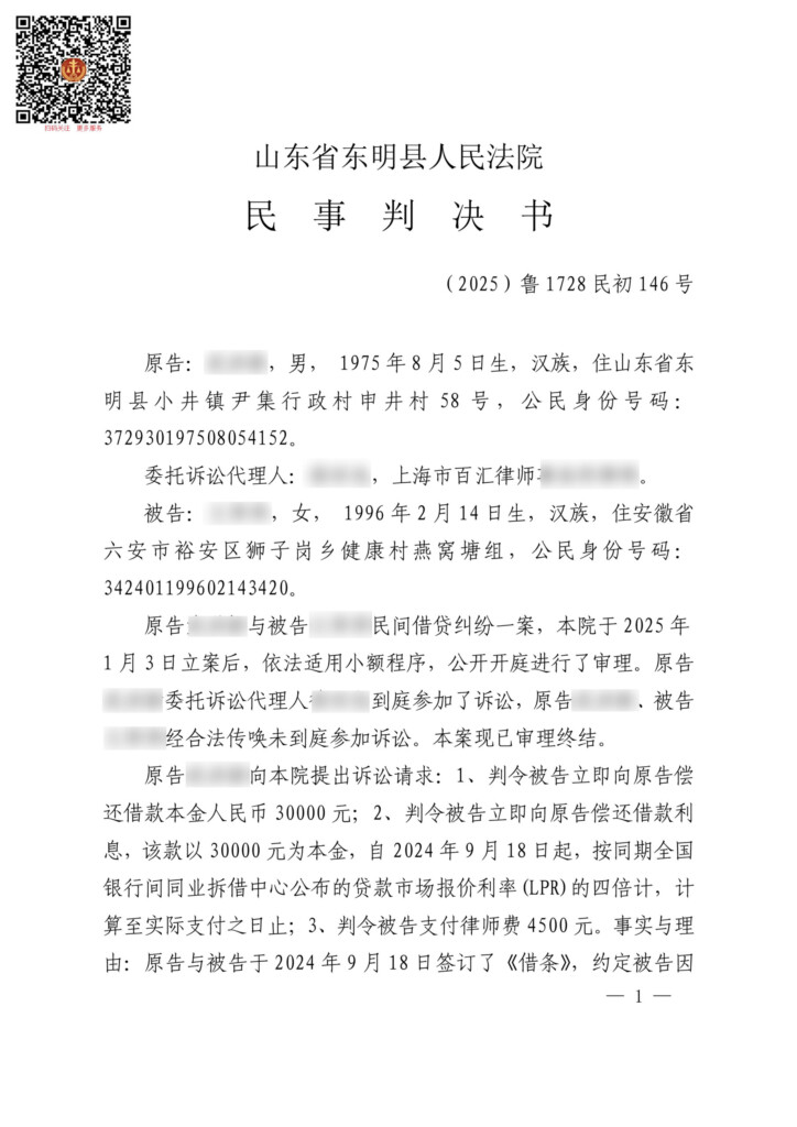 (2025)鲁1728民初146号-武洪新与王萍萍民间借贷纠纷-1